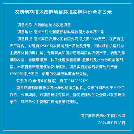 定將現(xiàn)有項(xiàng)目整體搬遷至江蘇省如東沿海經(jīng)濟(jì)開(kāi)發(fā)區(qū)。搬遷完成后,將形成年產(chǎn)1000噸戊唑醇、200噸吡丙醚、500噸噻蟲啉、200噸環(huán)丙唑醇原藥的生產(chǎn)規(guī)模... |